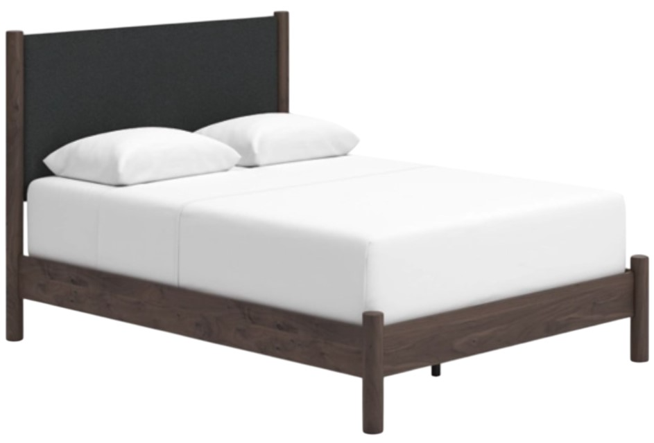 Includes upholstered panel headboard and panel footboard with rails